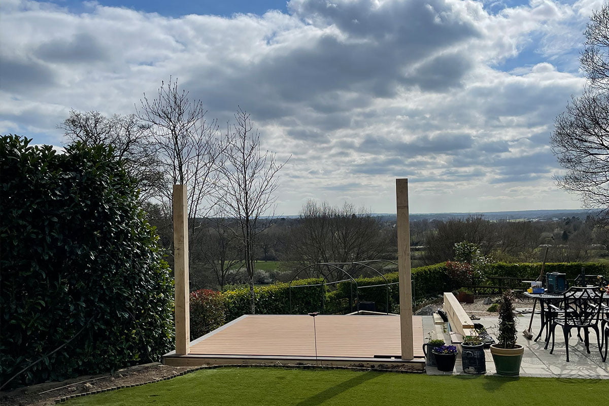 Our clients wanted to enjoy the fantastic views across Surrey and have a private area to sit and relax. We were asked to create a bespoke Oak pergola for an area of their garden that enjoyed fantastic views.