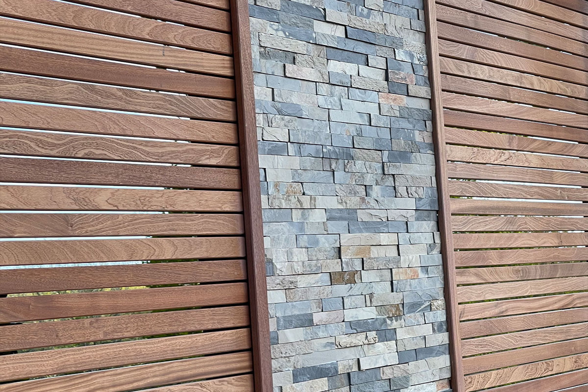 We also created a Cedar screening area as a backdrop to the pergola with a feature multi-stone cladding section in the middle.